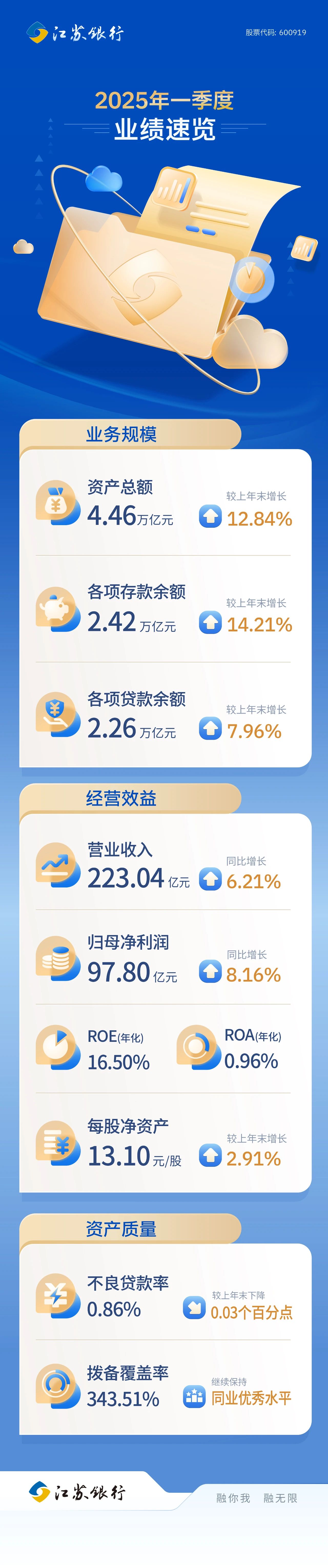 三好学生江苏银行一季报亮相:业绩持续良性增长