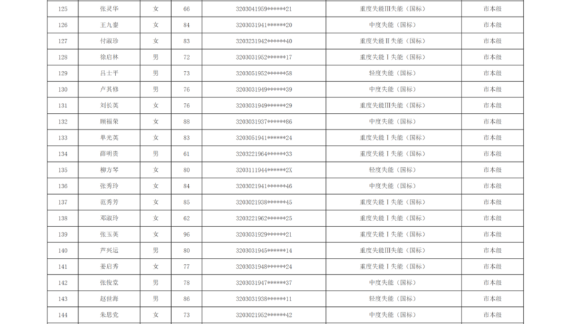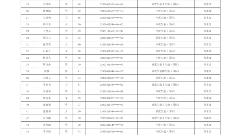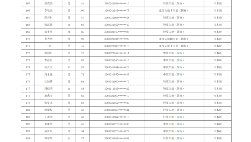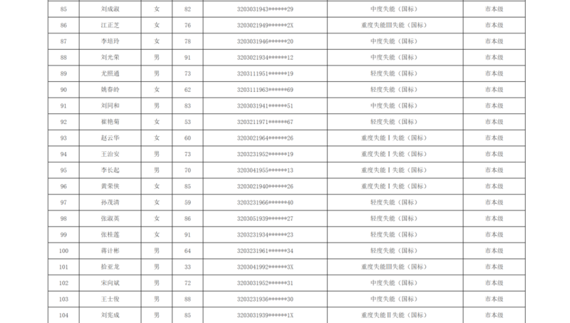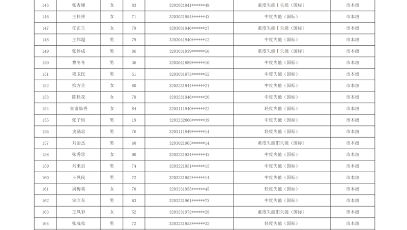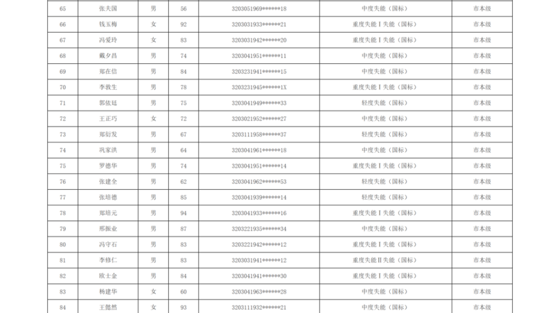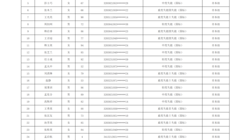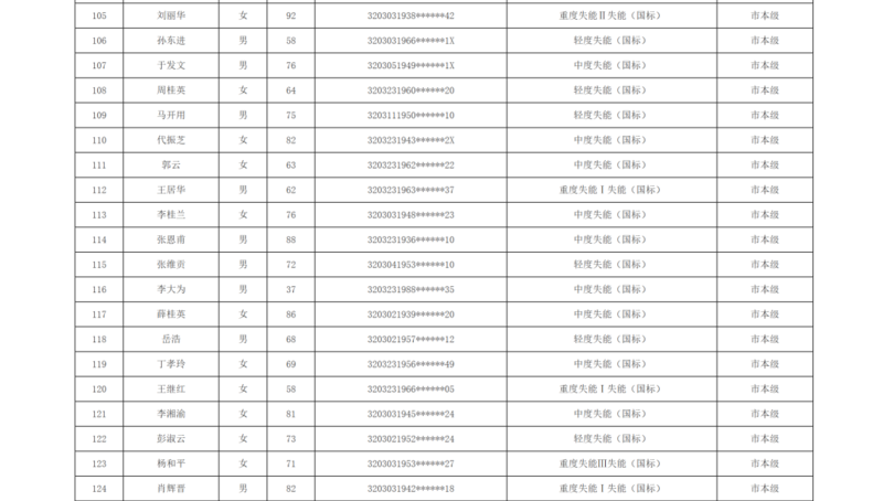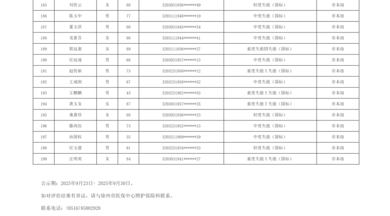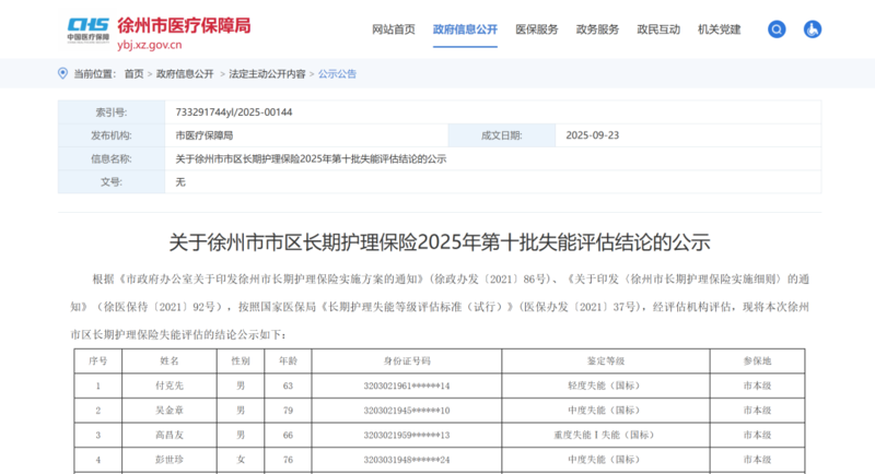 关于徐州市市区长期护理保险2025年第十批失能评估结论的公示