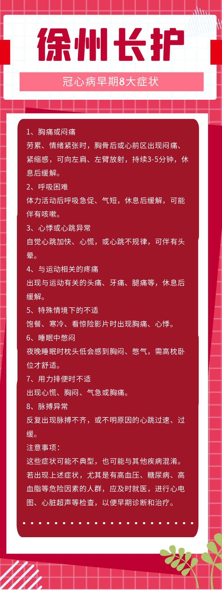【徐州长护】冠心病早期8大症状